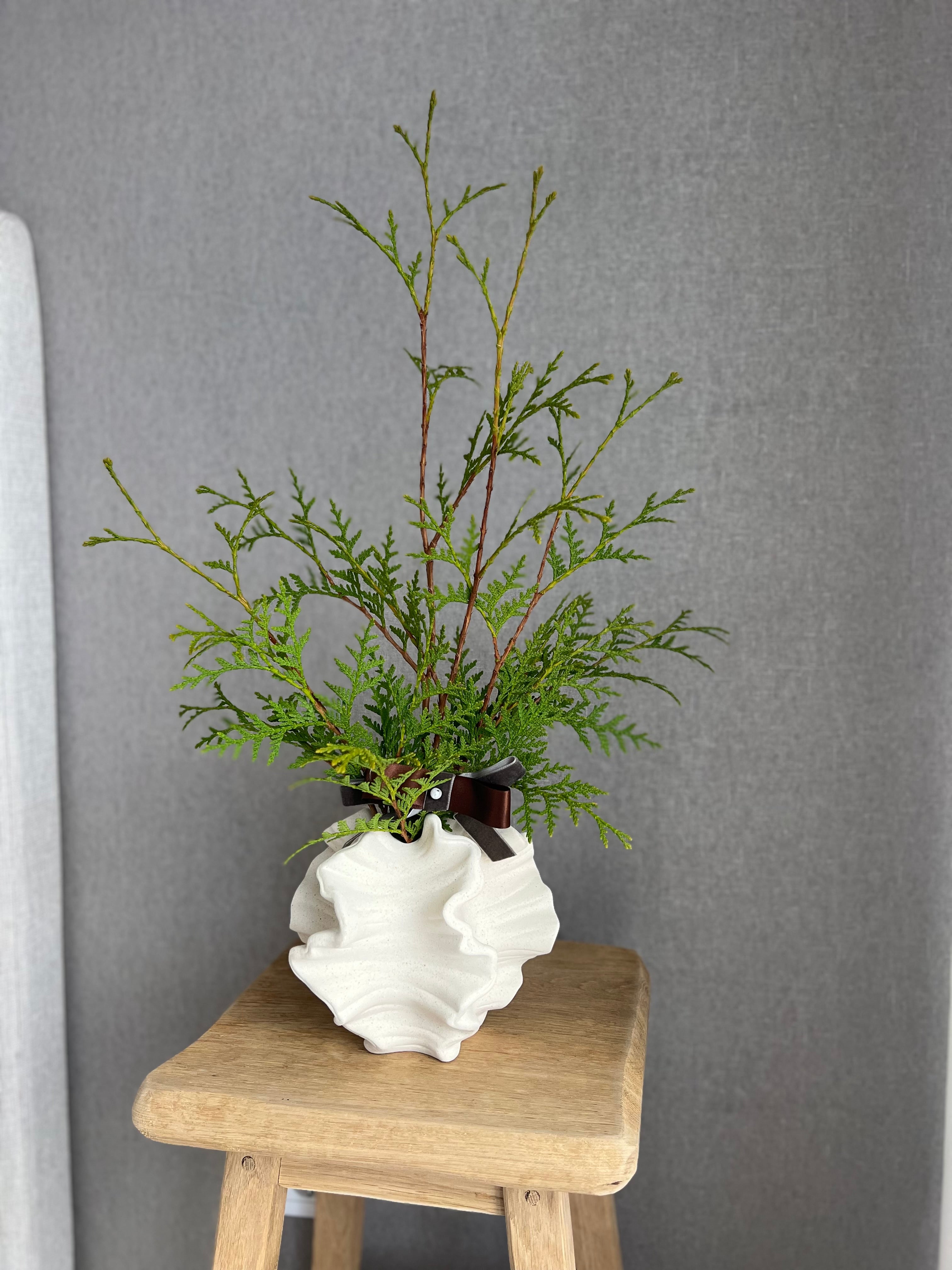 Vasens insida är glaserad och kan fyllas med vatten, lämplig för såväl färska blommor som torkade.